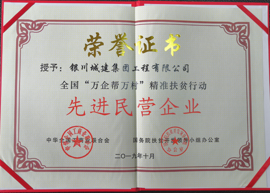 銀川城建集團(tuán)榮獲全國精準(zhǔn)扶貧先進(jìn)企業(yè)
